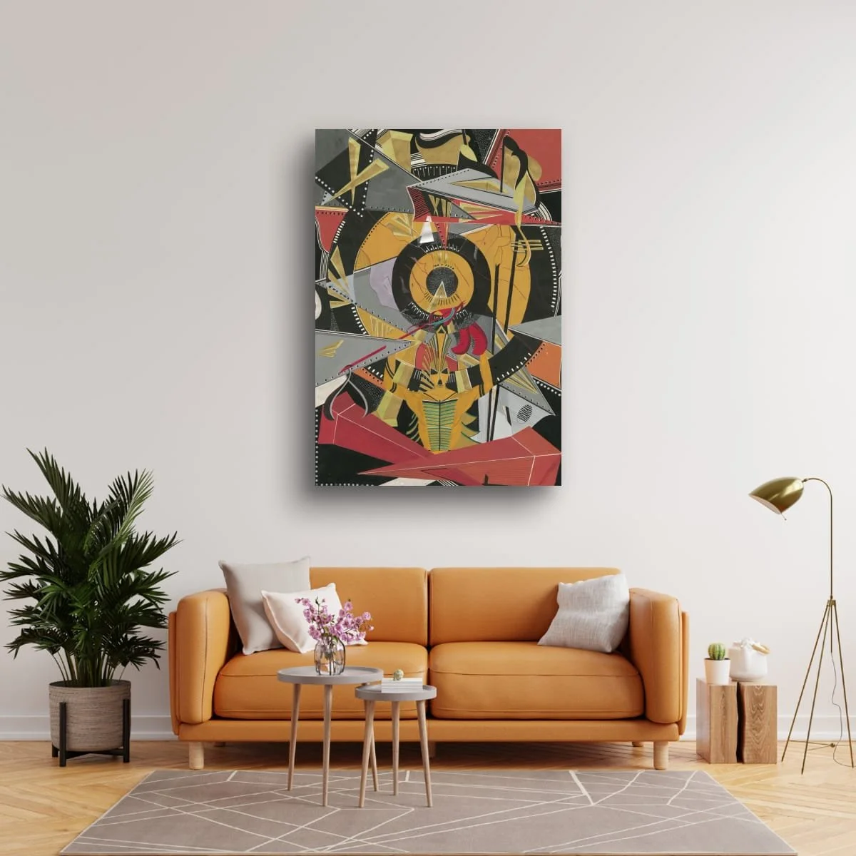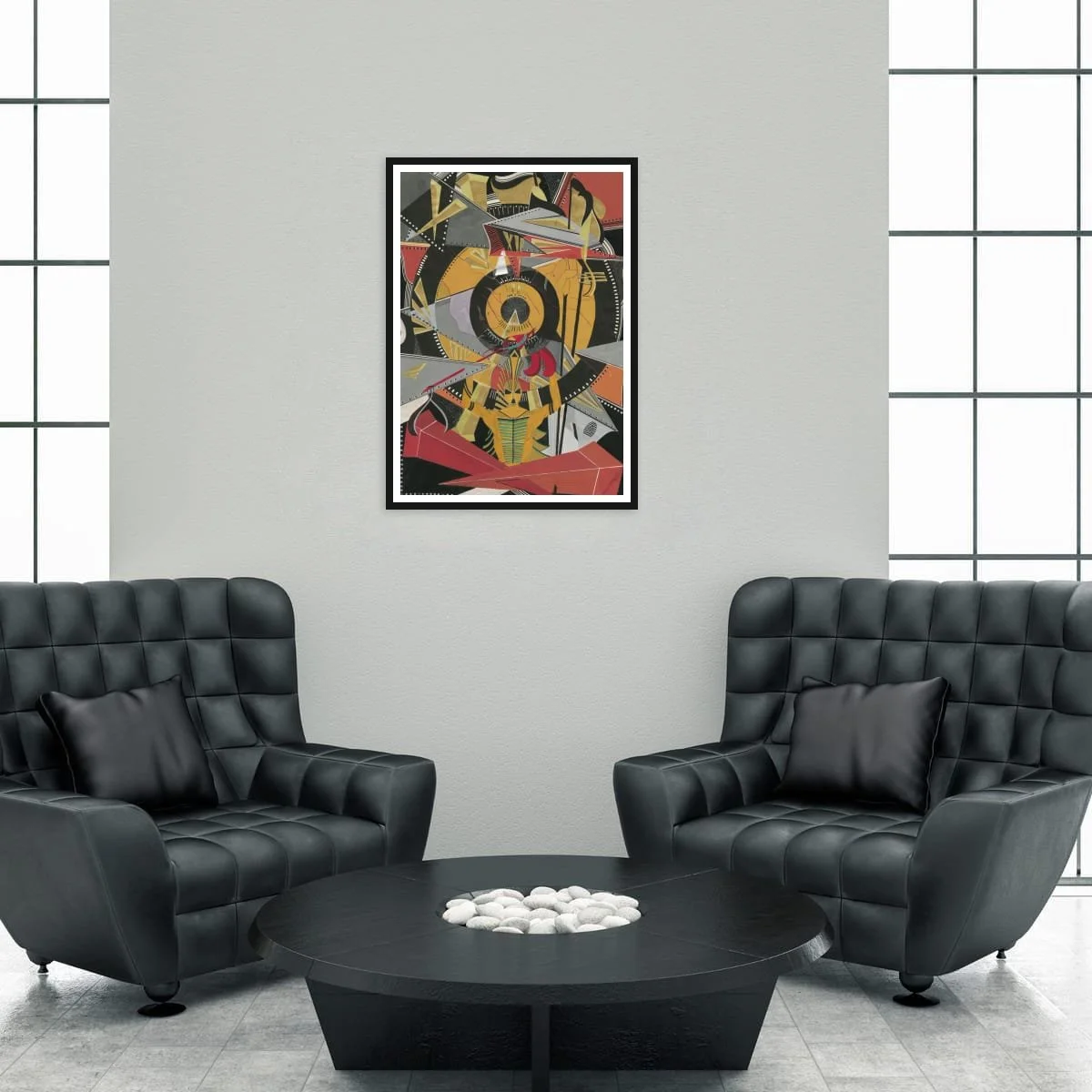 Each element is meticulously articulated, balancing bold graphic impact with delicate linework and nuanced shading. The interplay of colour—vivid yellows offset by deep blacks and flashes of red—imbues the piece with both energy and sophistication. The negative space is as carefully considered as the forms themselves, allowing the composition to breathe and inviting the viewer’s eye to travel across the canvas.